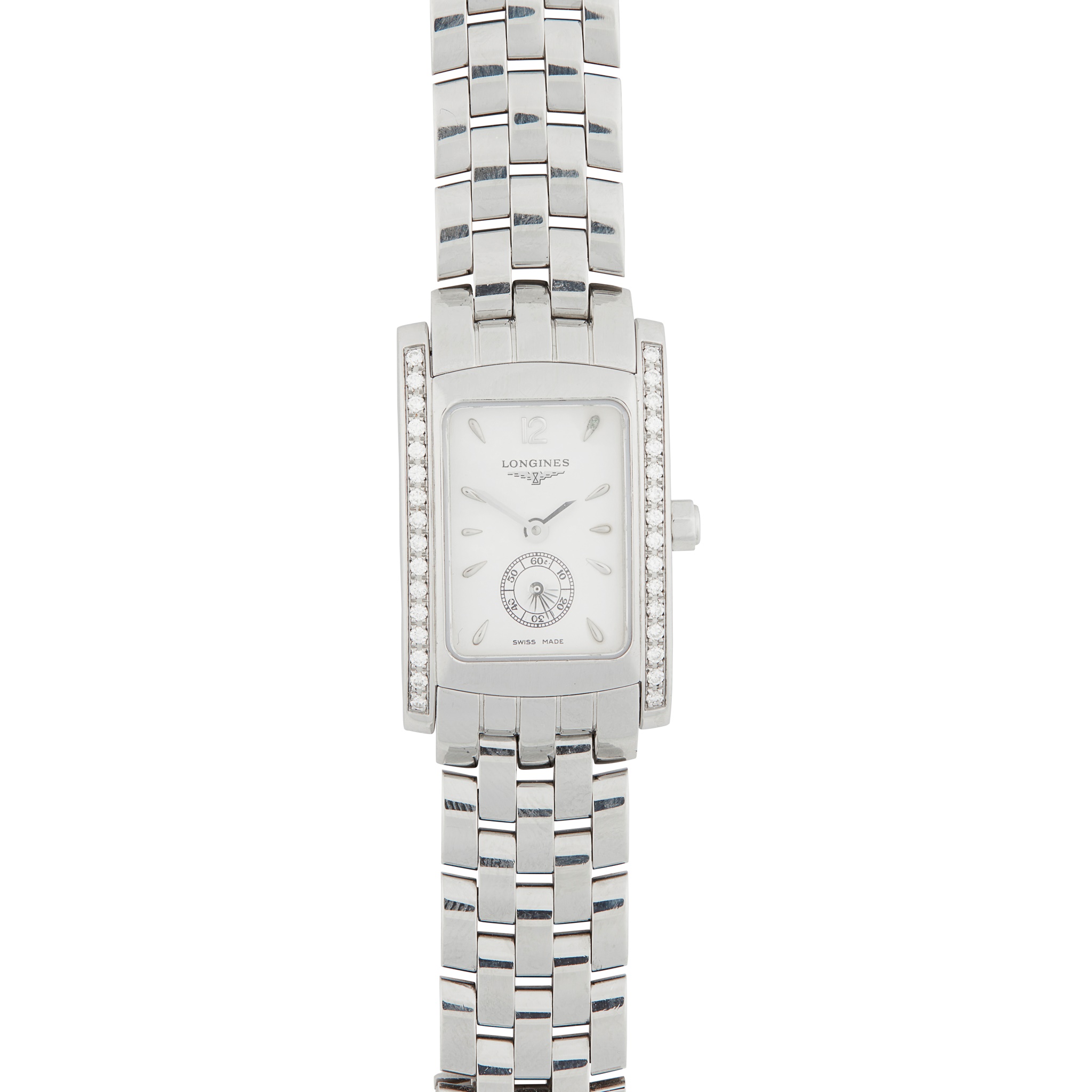 A lady's stainless-steel and diamond set wrist watch, Longines