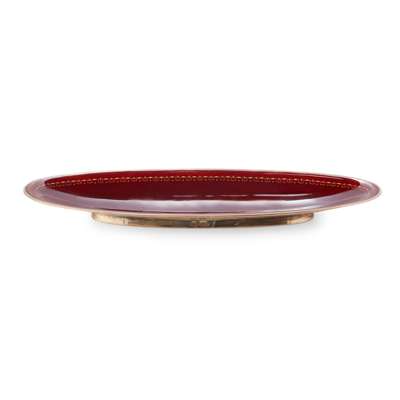 spurious Fabergé mark and fineness mark Moscow, circa 1908-26, of elongated oval shape, deep red guilloche ground with gilt border, oval collet foot