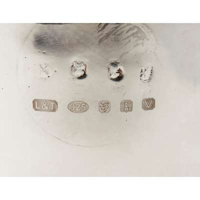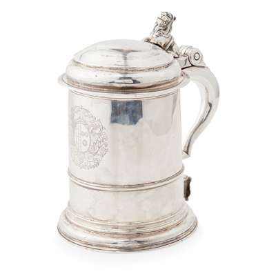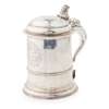 erased inset marks re-assayed Edinburgh 2020, of slightly tapered waisted cylindrical form, armorial to body, the S scroll handle with a lion passant thumbpiece, with a domed lid and raised on a stepped foot