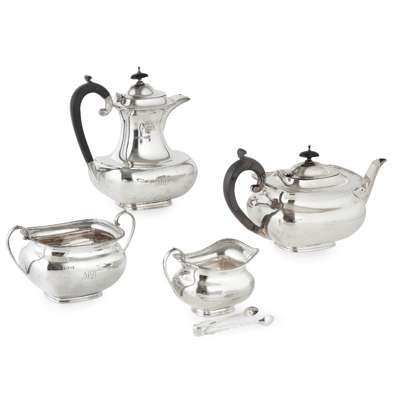 Barnett Henry Abrahams, Sheffield 1928, comprising a teapot, water pot, sugar and cream, rounded form with beaded border, plain scroll handles