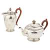 Adie Brothers Ltd, Birmingham 1927/28, comprising waterpot and teapot, each of circular form with R engraved to body, the domed lid with an intricate border and knopped ball finial, each with a composite scroll handle and raised on a stepped circular foot (2)