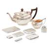 to include; a teapot and matching milk jug, Barker Brothers, Chester 1909, of shaped oval form, ribbed band, scroll handles; together with various cigarette and vesta cases etc. one with enamel College arms