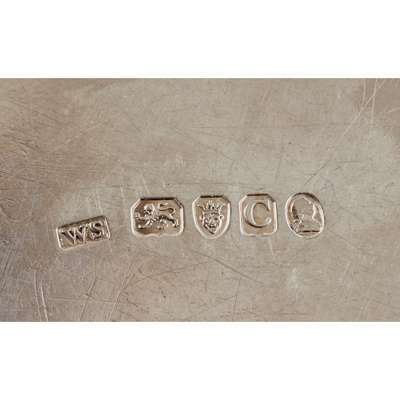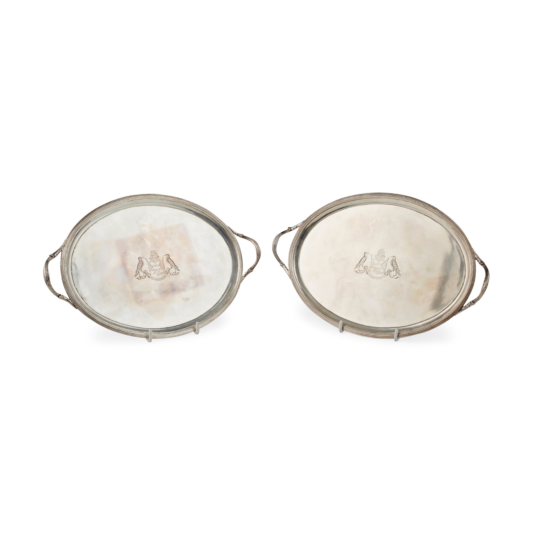 probably William Stroud, London 1798, each of oval form, threaded border and handles, armorials and motto to centre