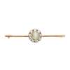 claw set with a cat's-eye-chrysoberyl cabochon, in a border of old round-cut diamonds, to an unmarked yellow metal bar brooch