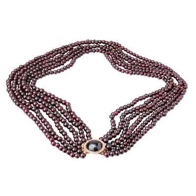 A six strand garnet bead necklace