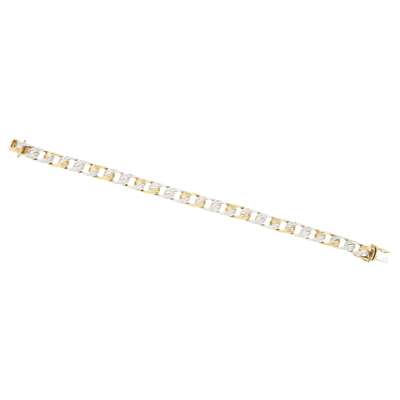 composed of alternating curb links, pavé set with graduated eight-cut diamonds or polished ribbed detail, stamped 750