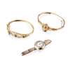 of hinged design; together with a 9ct gold garnet and pearl set bangle, and an early 20th Century diamond set lady’s wrist watch, stamped 15ct