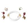 to include an oval jade cabochon and diamond set cluster ring, to plain shank stamped 14k 585; together with a pink quartz set cocktail ring, stamped 14k 585; a hinged hardstone set bangle, and a paste set pendant earrings