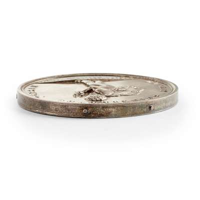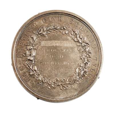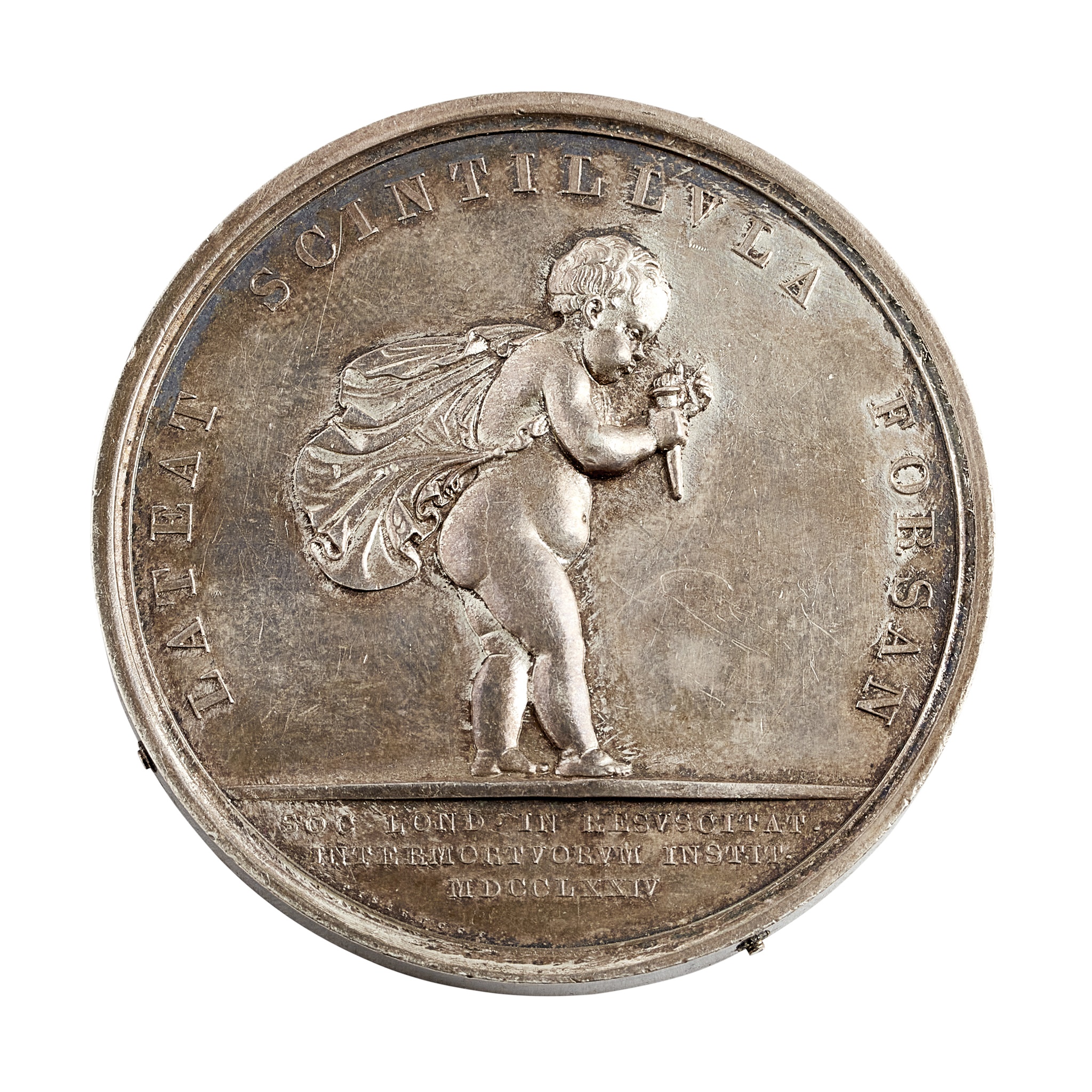 obverse with cherub in floating cloak with motto around and in exurge, the reverse with motto HOC PRETIVM CIVE SERVATO TVLIT, with engraved presentation within wreath, the name deliberately obliterated above VIT. OB. SERV D.D SOC.REG.HVM 1841