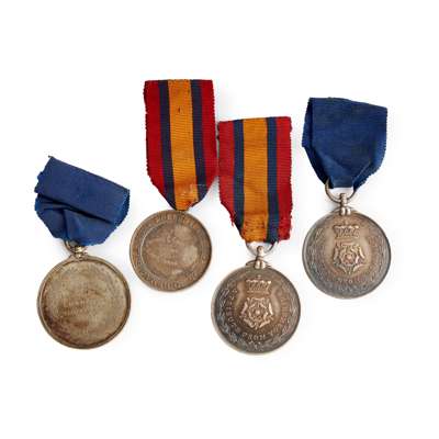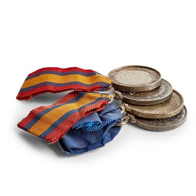 two from the Yorkshire regiment awarded to 28027E. Wilds and 22908 Pte. J. R. Addinall; another Boer War example presented by the Parish of Norton to Private C Crosser 2nd East Yorkshire Regiment and 14th Regiment prize medallion