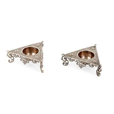 HR Conjoined, Augsburg circa 1790, the triangular tops with cherubs to the corners, central well, all raised on scrolling feet with cast pierced apron detail