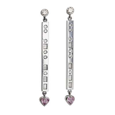 A pair of diamond and pink sapphire 'Morse Collection' earrings, Eric N Smith