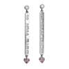 each collet set with a round brilliant-cut diamond, suspending a panel set with alternating round brilliant and baguette-cut diamonds spelling I-L-Y in Morse code, terminating in a collet set heart-shaped pink sapphire, to post and butterfly fittings
