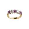 claw set with three round-cut pink sapphires and two round brilliant-cut diamonds, to a plain 18ct yellow gold shank