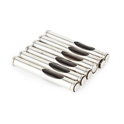 Perry & Co, Chester 1907, formed as a rifle magazine the six cylindrical chambers with ebony markers with applied and engraved silver capes, number 1 – 6
