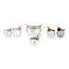 to include; an Irish twin handled sugar bowl, Richard Sawyer Dublin 1828, with bright-cut detail and vacant cartouche; together with a cream jug with gadrooned detail, Samuel Hennell, London 1811; three further cream jugs with bright-cut detail, and another of plain design with presentation inscription