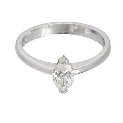 A marquise-cut single stone diamond ring