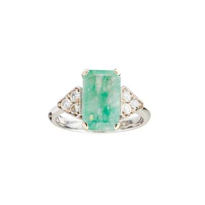 An emerald and diamond set ring