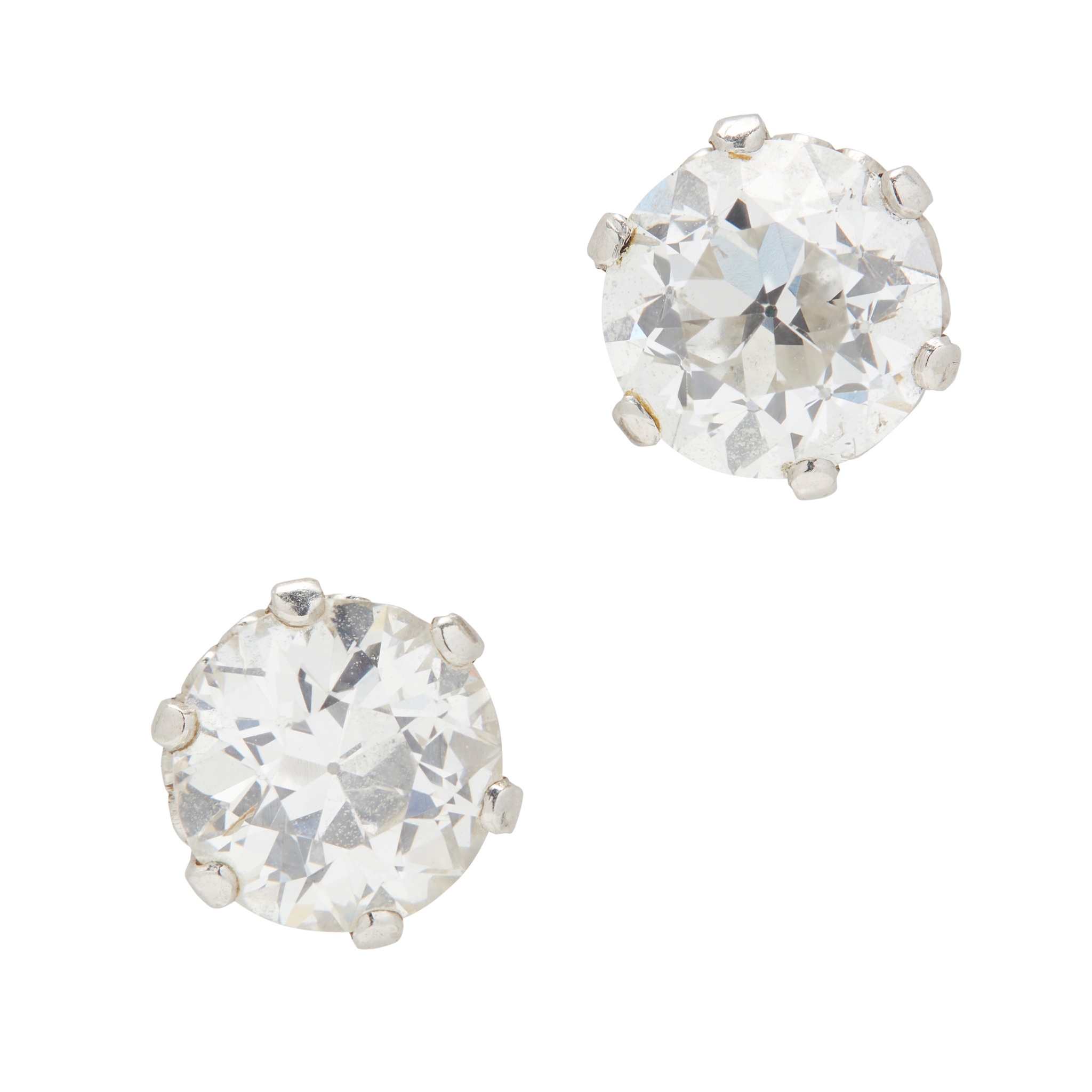 each claw set with an old round-cut diamond to post fittings, unmarked