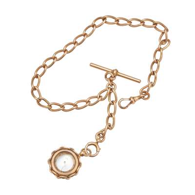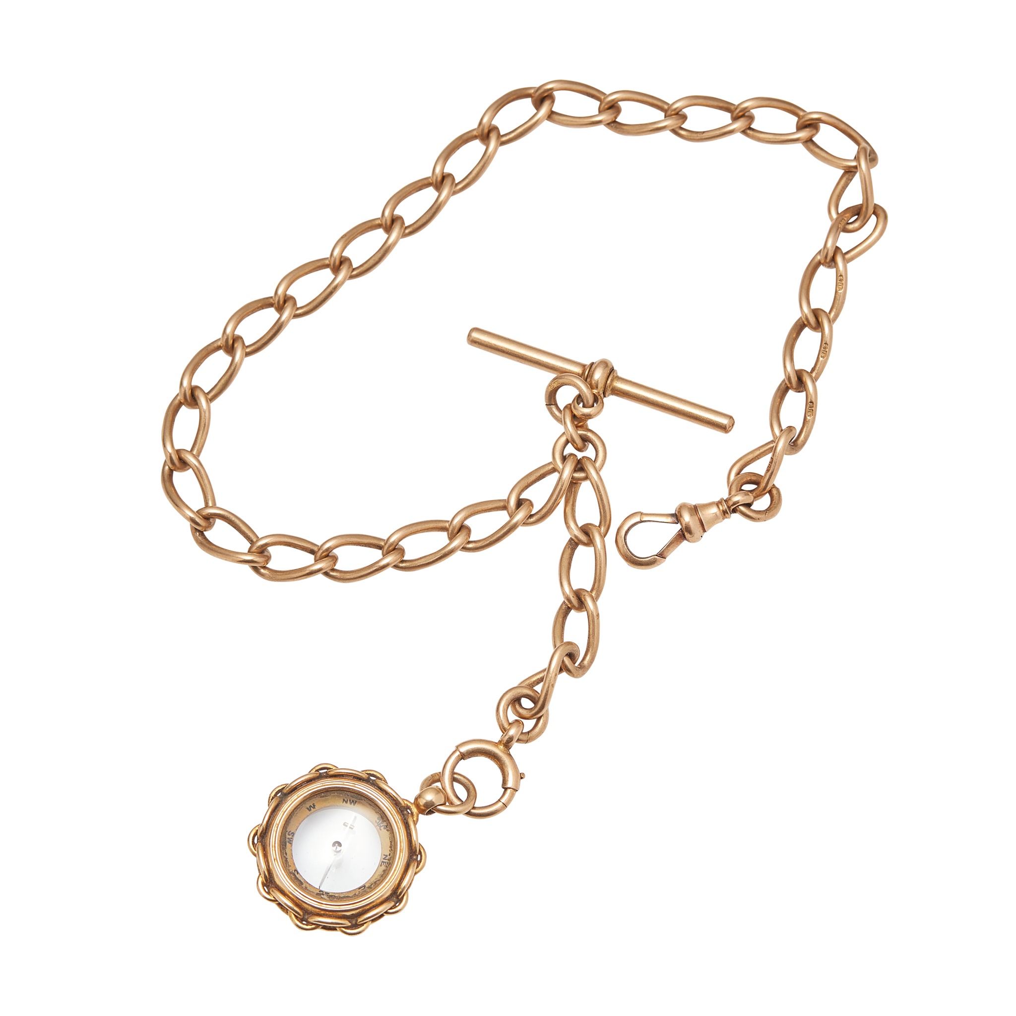 composed of elongated curb links, T-bar suspension, with a compass fob