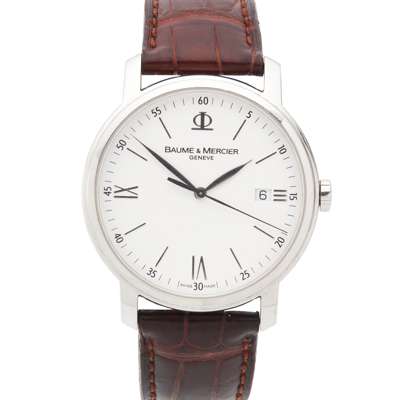 Classima, clear white dial, Roman and baton indicators, sweep second hand, date aperture, leather strap with buckle, with box