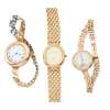 plain case with oval champagne dial, baton indicators, integral polished link bracelet, fold over clasp; together with two lady's gold cased wrist watches, one with gold bracelet, the other with a sprung bracelet