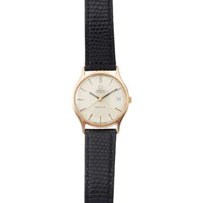 Sheffield 1975, the plain off white dial with baton indicators, sweep second hand, date aperture, automatic movement, leather strap and plated buckle