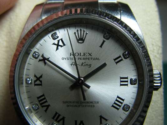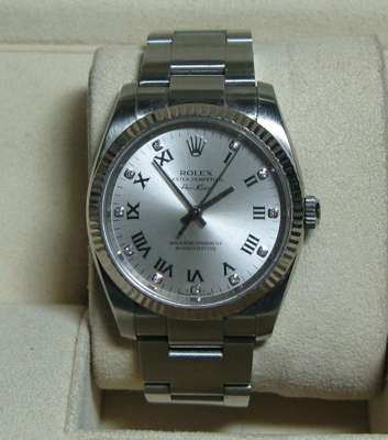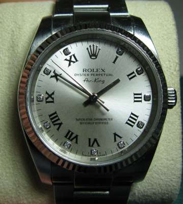 Air-King, silvered dial, diamond set and Roman numerals, sweep second hand, faceted bezel, oyster bracelet and fold over clasp