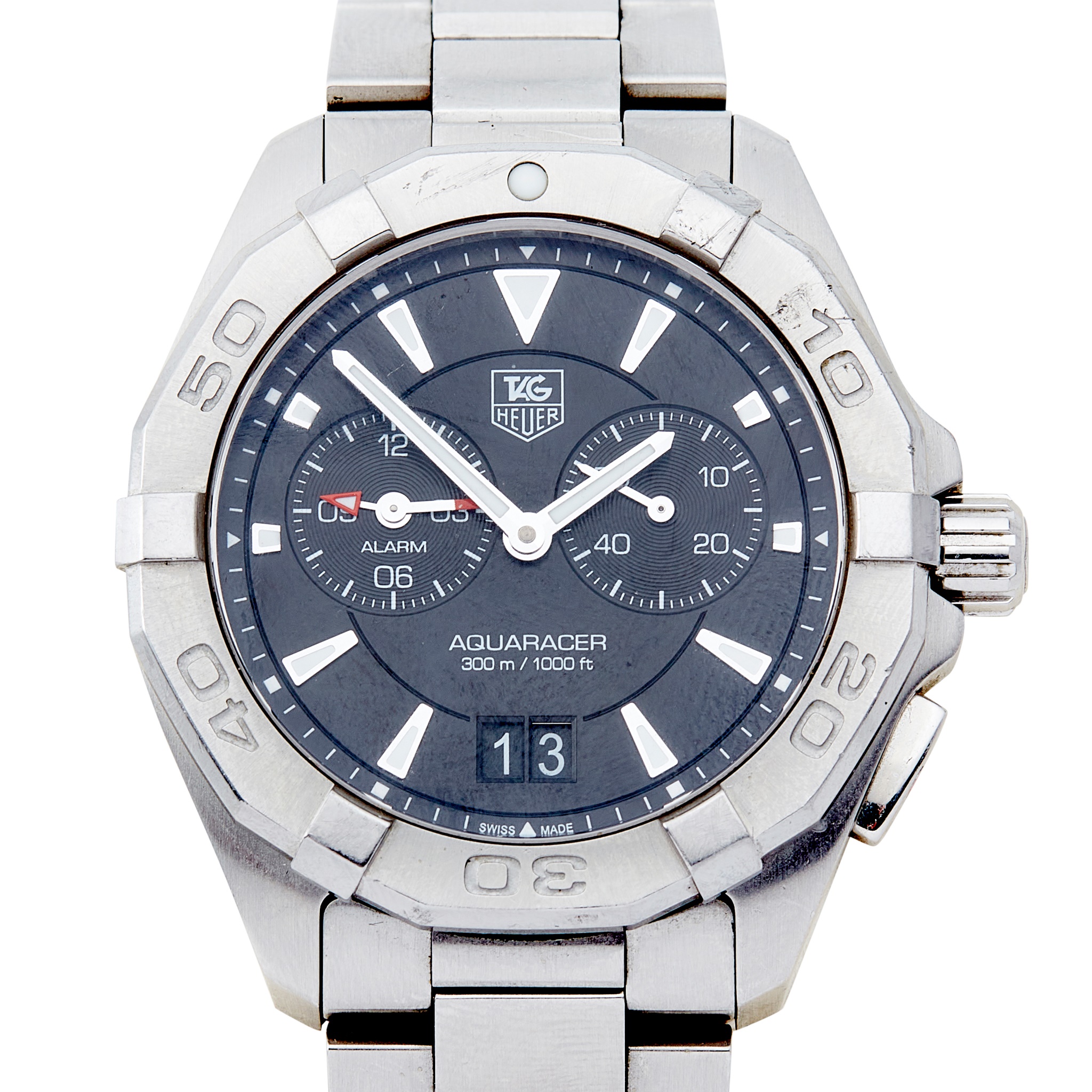 Aquaracer, WAY111Z, black dial, and register dials, with alarm, luminous baton indicators, rotating bezel, polished bracelet, fold over clasp, quartz, with box and card