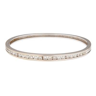 of hinged design, the front half channel set with twenty slightly graduated round brilliant-cut diamonds