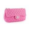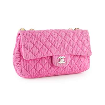 pink perforated quilted canvas, silver-toned and lucite hardware, cream interior