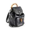 black calf leather, gold-toned hardware, bamboo handle and toggle, black interior