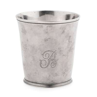 IM, London 1793, of plain tapering cylindrical form, slight moulded rim, engraved initial, threaded foot