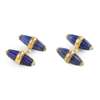 each terminal of ribbed-torpedo form, emerald set cabochons to either end, conjoined by gilt metal links stamped 925