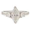 claw set with a marquise-cut diamond, flanked to either side by a pear-shaped diamond, to a plain unmarked shank