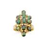claw set with a radiating cluster of oval-cut green sapphires, interspersed with claw set eight-cut diamonds, to a plain unmarked yellow metal shank