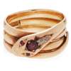modelled as a coiled snake, the head claw set with a ruby and two old cushion-cut diamonds, the eyes each set with a round-cut ruby