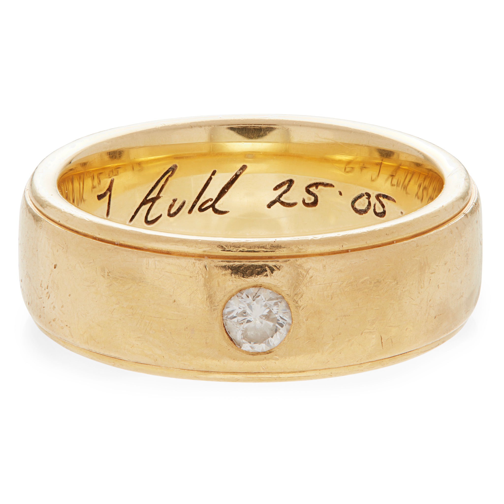 gypsy set with a round brilliant-cut diamond, engraved to inside