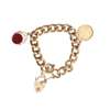 composed of large curb links, suspending an 1898 half sovereign and a carnelian set fob, to a heart shaped padlock clasp