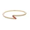 of hinged design, the scrolling front section set with a row of graduated old-round and cushion cut diamonds, and a central row of six oval and cushion cut rubies, continental marks possibly Austrian