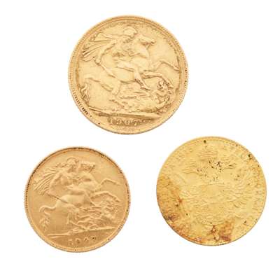 together with a 1907 half sovereign and a 1915 Austrian 4 ducat