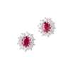each claw set with an oval-cut ruby, in a single border of small round brilliant-cut diamonds, to 18ct gold post and butterfly fittings