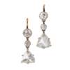 each millegrain set with two graduated old round-cut diamonds, and a triangular shaped rose-cut diamond drop, to hook fittings, unmarked