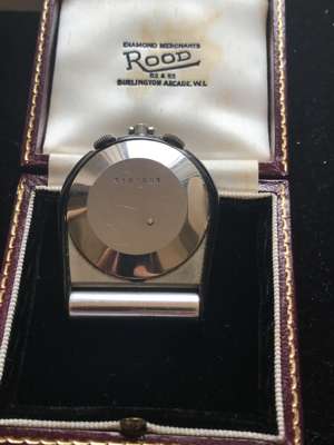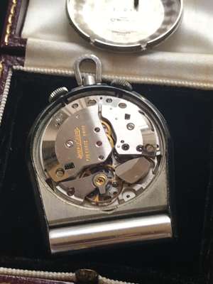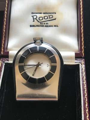 A stainless steel travel alarm clock, Jaeger LeCoultre