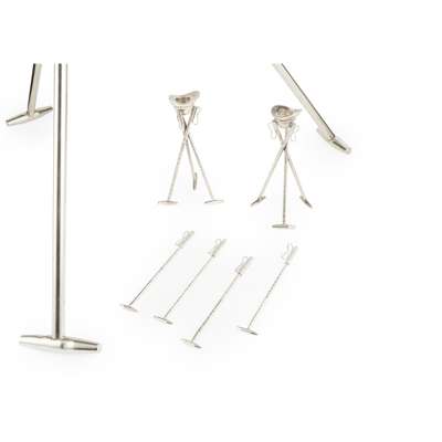 modelled as a polo jockey's hat, with folding polo stick stand; together with olive picks and candlesticks, by Culinary Concepts London
