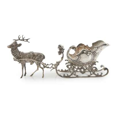A Continental novelty sleigh with reindeer