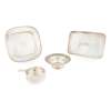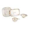 of plain form, stamped TIFFANY & CO/ sterling silver to underside, engraved W to handle together with an American dish, Stamped STERLING/ Reed & Barton, of moulded square form, raised pierced border, engraved HYK to centre; together with another of rectangular form, stepped rim, stamped REED & BARTON/ SILVER SOLDERED; and an American lobed dish, the everted rim with embossed Grecian and vine decoration
