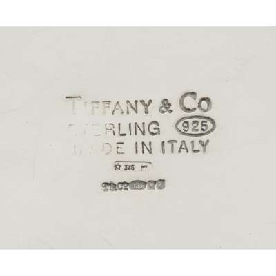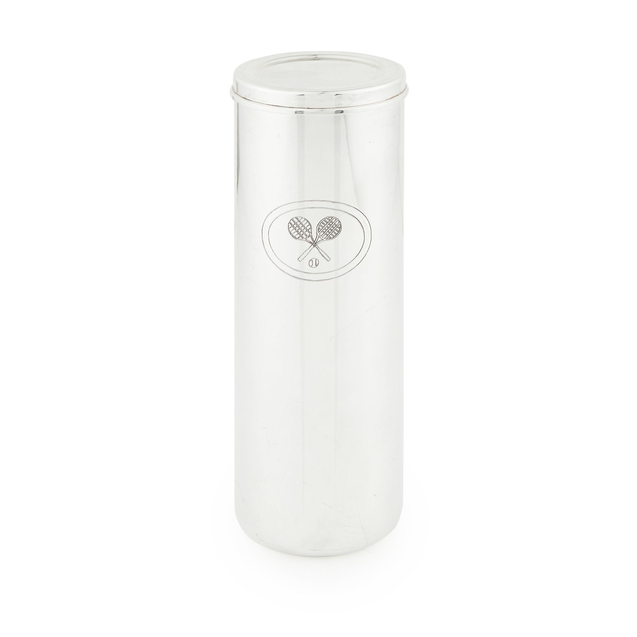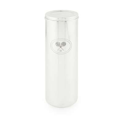 import marks for London 1999, stamped made in Italy, of cylindrical form, engraved with the Wimbledon emblem to front, with pull off lid and Tiffany blue draw string bag