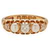 claw set three graduated old-cut diamonds alternating with two pearls, to a plain 18ct yellow gold shank