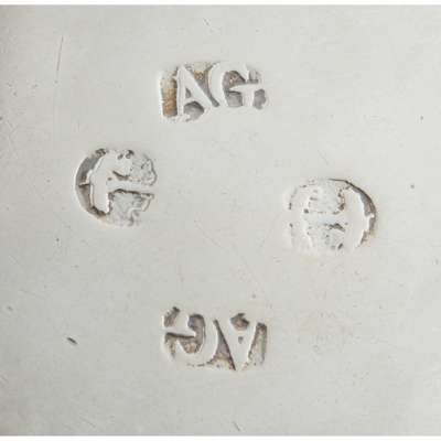 Adam Graham, circa 1770, marked AG, town mark, AG, town mark, of slightly bellied cauldron form with ribbed border, each raised on three hoofed feet
